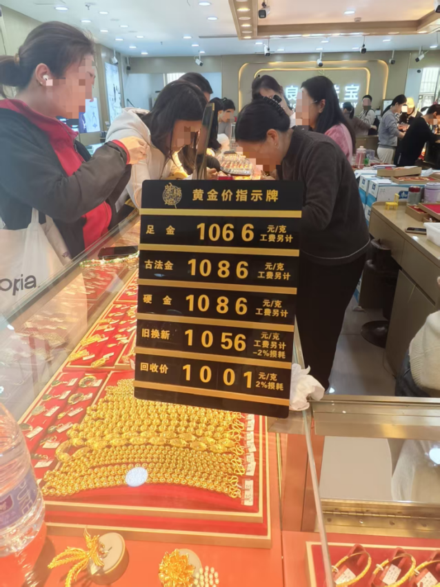 一位上海年轻女性消费者张婉(化名)对记者感慨,本来是陪朋友随便逛逛,没想到店里这么火热,这种氛围让她也涌上一种“抢金”心态,开始和朋友一起积极“觅金”:“毕竟这段时间,黄金价格确实降了不少。”
